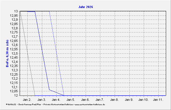 | 0,15 m: | 1,1 °C • ⇒ | 0,30 m: | 12 cb • ⇒ (78 % nFK) | |